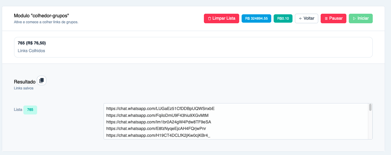 Wppdivulga tem um sistema que salva todos os links que você receber no seu whatsapp, deixe sua sessão conectada por algumas horas e terá muitos links novos.